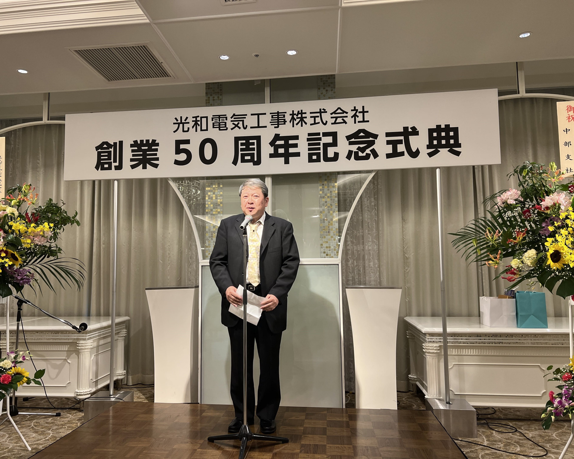 ■8月10日:【光和電気工事株式会社 創業50周年記念式典】が、グランディエールブケトーカイで行われました。